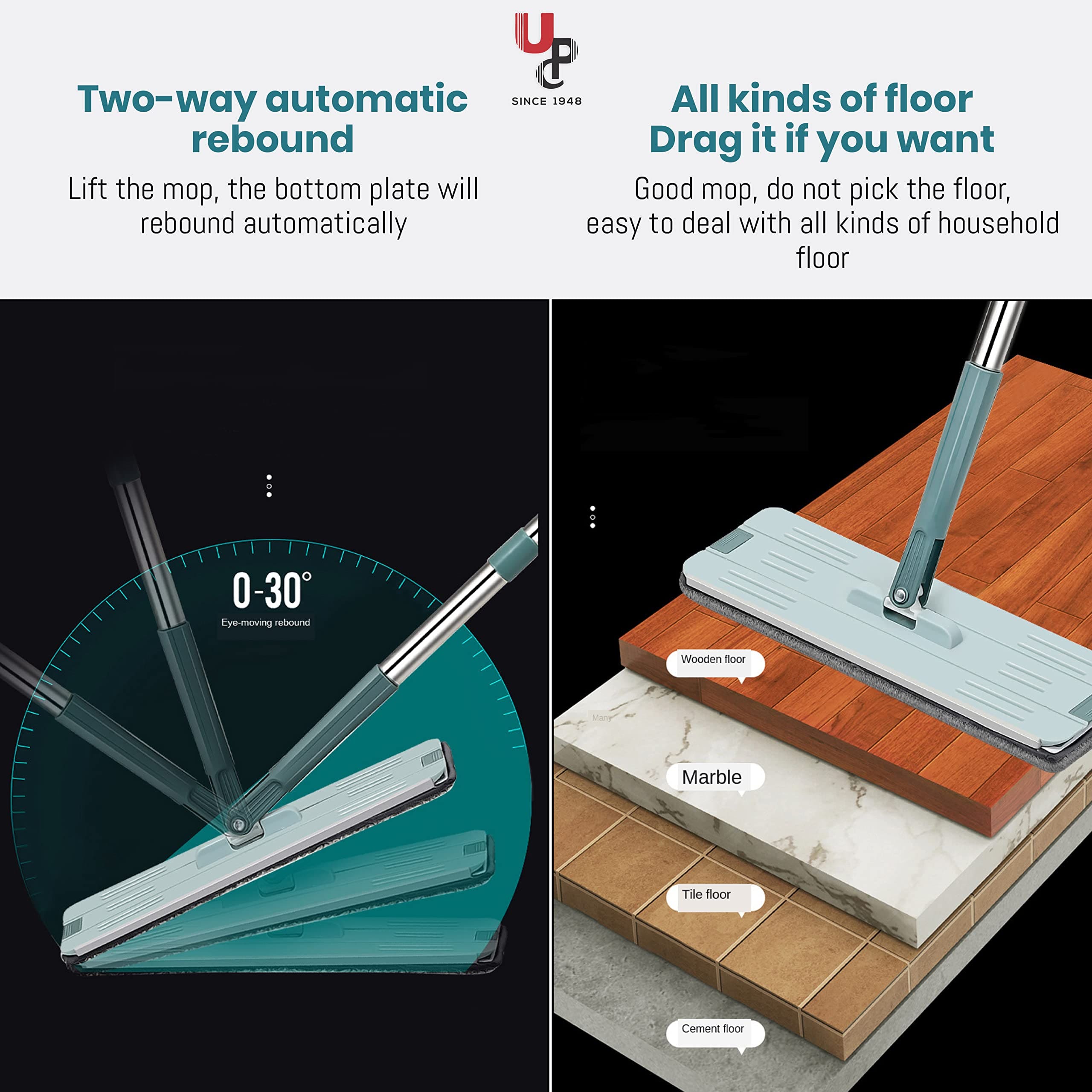 The microfiber mop head is super absorbent, and it effectively removes dirt, dust, and grime from your floors. The mop pads are machine washable, making them reusable and eco-friendly. This mop system includes (1+1) super-absorbent microfiber pads that are perfect for tackling all types of messes.