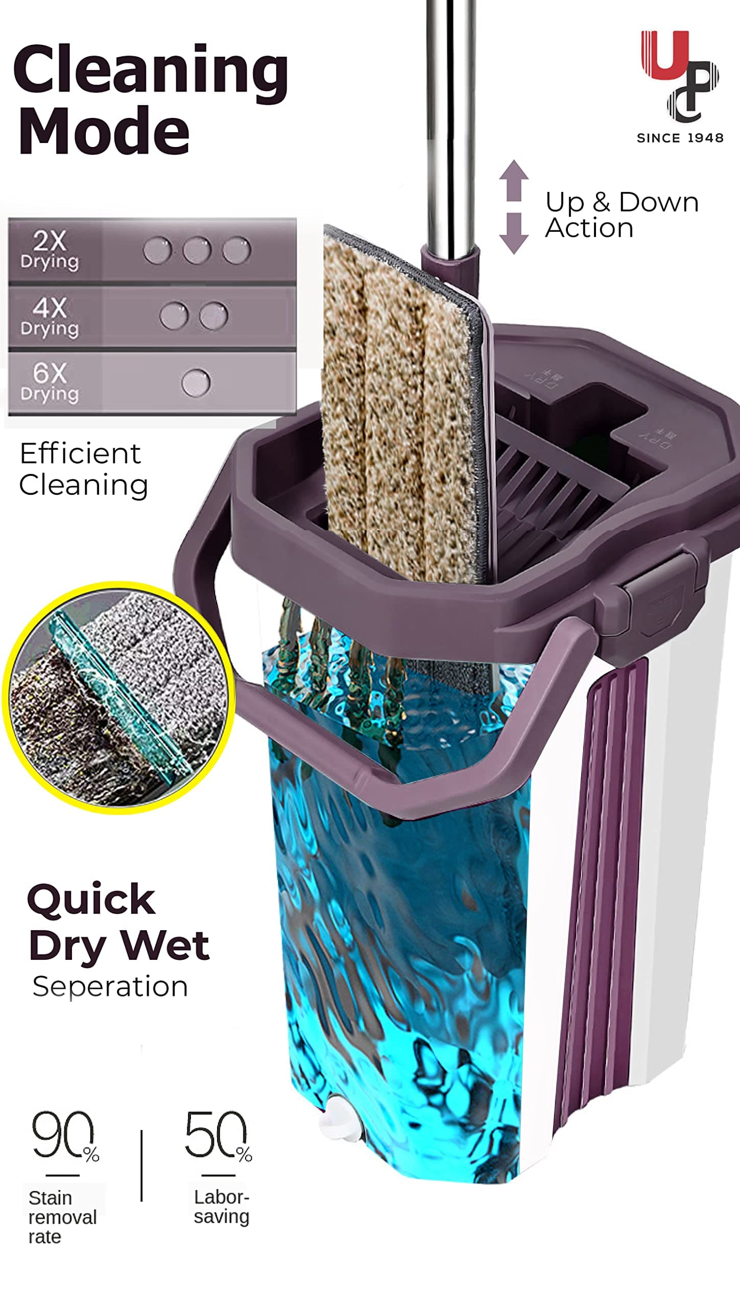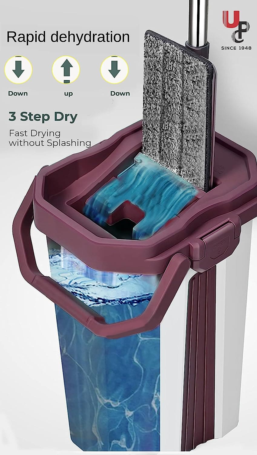 The Squeeze Microfiber Flat Spin Mop System introduces an innovative and adaptable cleaning solution, streamlining the mopping process for enhanced efficiency. The system incorporates a 360° flexible head, enabling effortless access to and cleaning of confined spaces and corners.