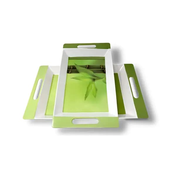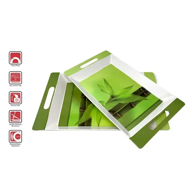 SND Homes Crystal Melamine Serving Roseate Series Tray | Set of 2 | Multicoloured;White (Medium and Large Size)