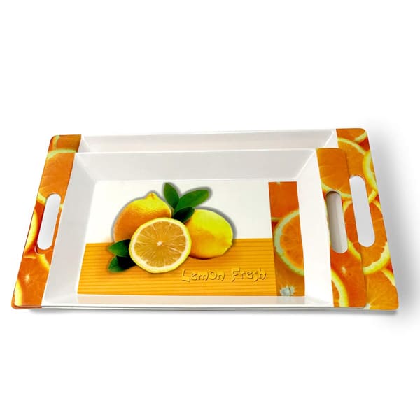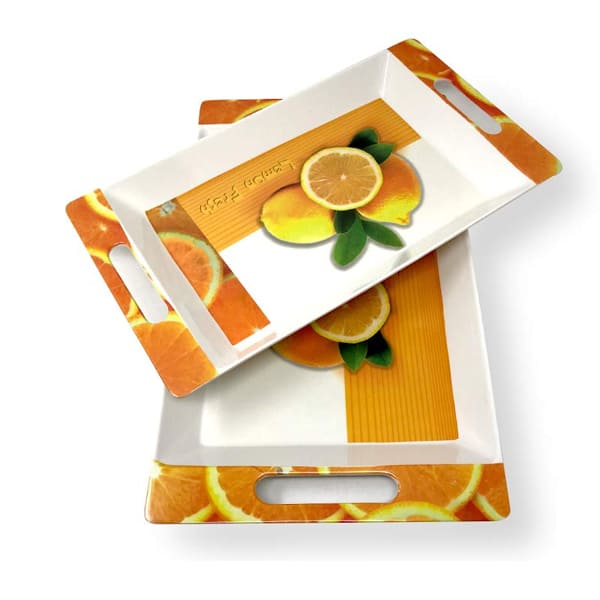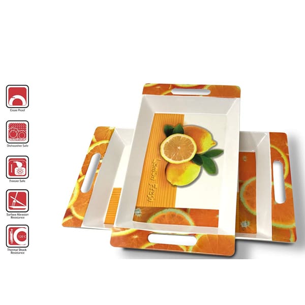 SND Homes Crystal Melamine Serving Tray, Set of 2 (Multicolor, White, Medium and Large Size) Roseate Series