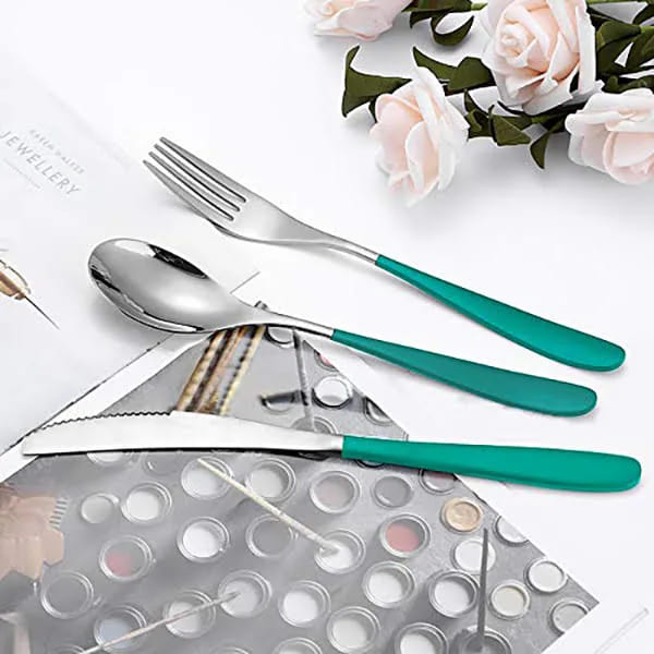 SND Homes Delicacy Cutlery for Fine Dining, Made of SUS 304 Glossy Silver Finish Spoon/ Forks/ Knives (Set of 6 Silver Green Knives)