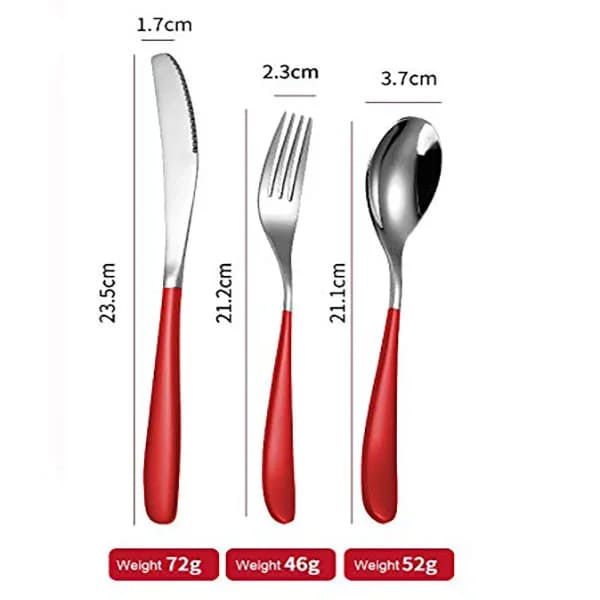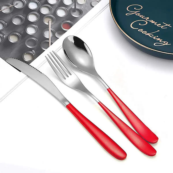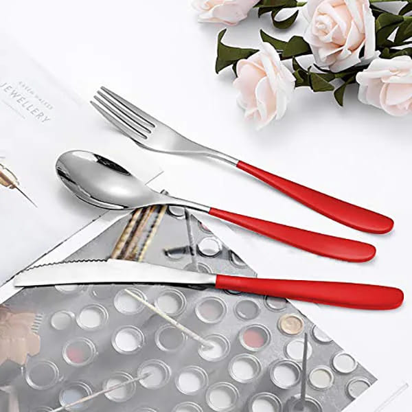 SND Homes Delicacy Cutlery for Fine Dining, Made of SUS 304 Glossy Silver Finish Spoon/ Forks/ Knives (Set of 6 Silver Red Knives)