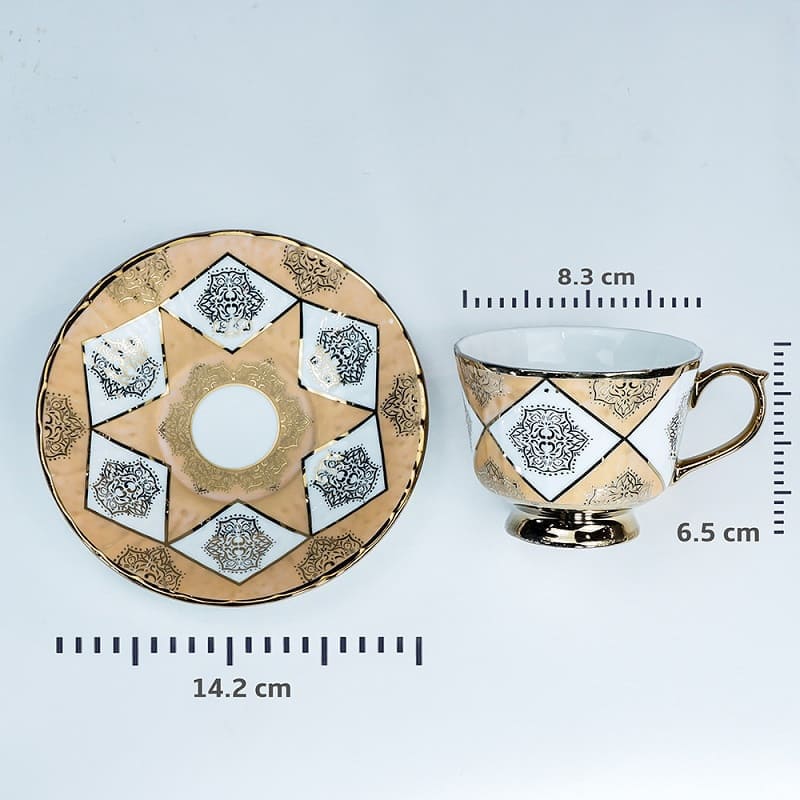 Introducing our beautiful saucer and cup set, the perfect addition to any kitchen or dining room. Our set includes cups and saucers, each uniquely designed with intricate patterns and a glossy finish. Made with high-quality ceramic materials, our cups and saucers are durable, dishwasher safe and perfect for daily use.