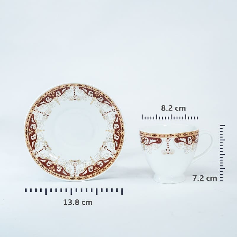 Introducing our beautifully crafted stylish cup and saucer set, the perfect addition to any kitchen or dining room. Our set includes cups and saucers, each uniquely designed with intricate patterns and a glossy finish. Made with high-quality ceramic materials, our cups and saucers are durable, dishwasher safe and perfect for daily use.