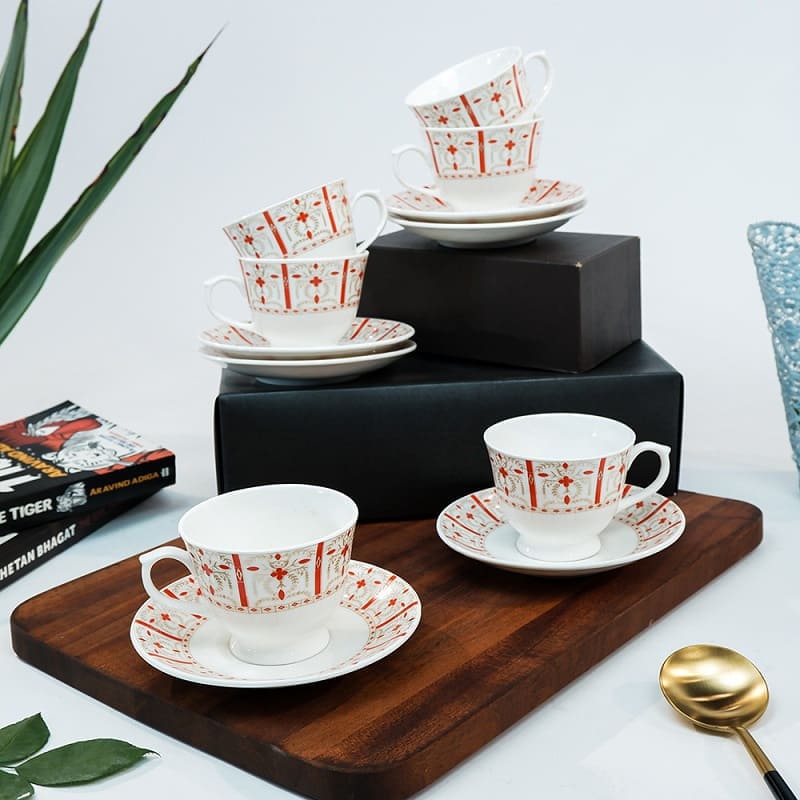 Buy our beautiful teacups with plates which is not only functional but also aesthetically pleasing. The beautiful design and vibrant colors add a touch of elegance and style to your home decor. Impress your guests and enjoy your morning beverages with our ceramic cup and saucer set. It also makes a perfect gift for any occasion, from housewarming parties to weddings.
